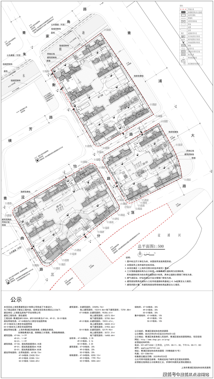 近日,青浦区QPC10004、QPC10005单元47-04、49-01、50-01地块规划设计方案公示。