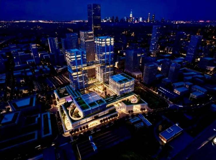 由扎哈·哈迪德有限公司设计,总建筑面积21.89万平方米,3栋100米高塔楼已结构封顶,预计2026年竣工。项目秉持绿色可持续理念,将引进新能源、碳汇交易、互联网等新兴产业。