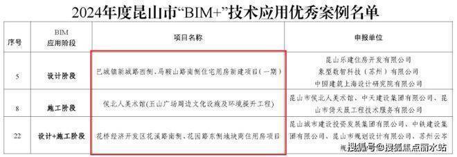 昆山市“BIM+”技术应用优秀案例名单