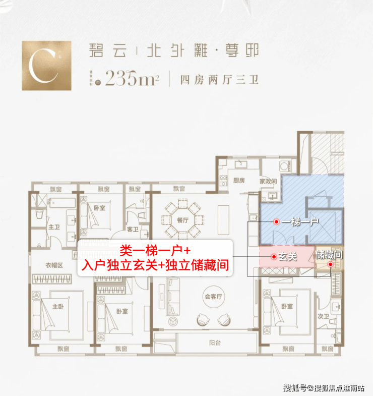 ①类一梯一户+入户独立玄关+独立储藏间,豪宅私密性爆表!
