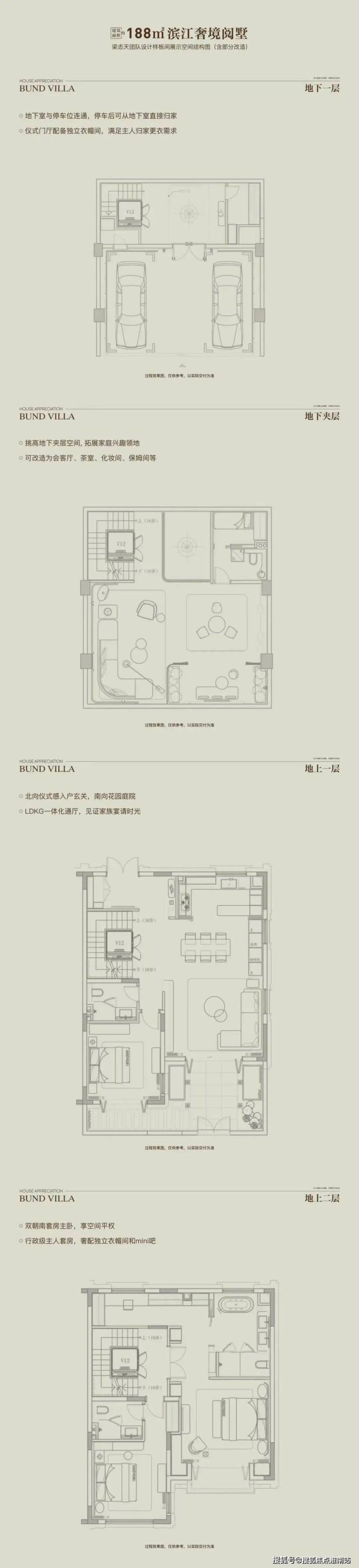 以“全两层+会所”的形态革新、花园露台地下室的全维空间、大面宽短进深的奢适格局,重构别墅生活场景。