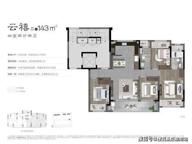 户型建面约124-159㎡,均价43000元/㎡