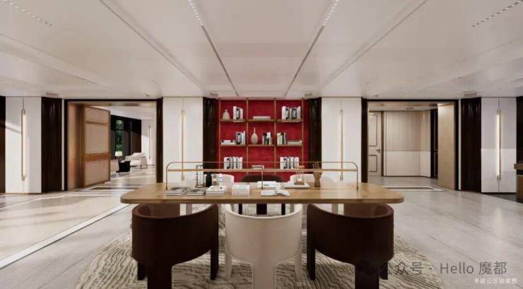 凝练上海城市文化符号,以更多的思考构建生活场景。博埃⾥建筑设计事务所(SBA),用红色大理石为空间注入活力与激情,为住宅设计现代简约的意大利风格大堂。明艳馥郁的红色大理石,献映鎏金时代ArtDeco经典的摩登瑰丽,意式风情&海派精髓交织的精致典雅,于传承与创新中孕育而生。