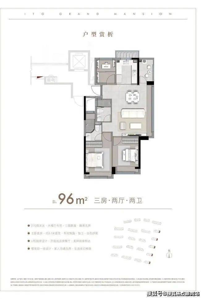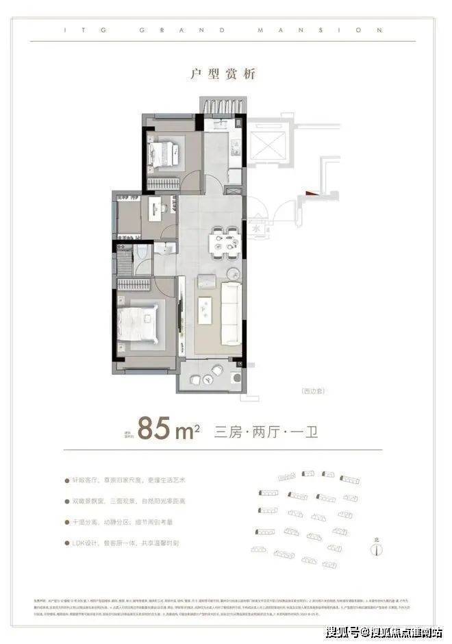 建面约85-96㎡ 3房户型