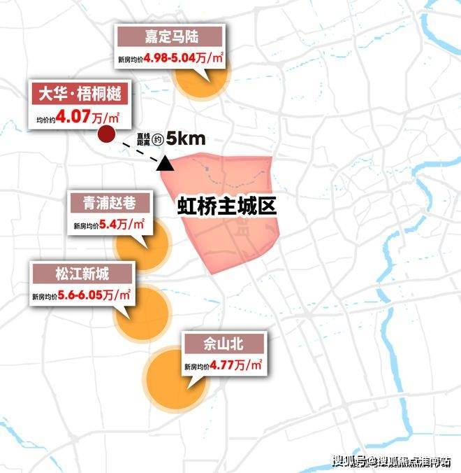大虹桥生活圈的辐射板块中,从青浦赵巷、华新,嘉定新城,再到松江佘山北、松江新城等,即使是高层产品的价格也不低了。