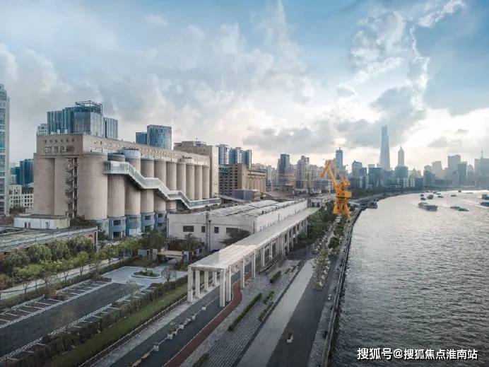 红砖建筑改造为总部办公+艺术空间;8万吨筒仓顶层打造一线江景观景餐厅,中区引入美术馆/演艺空间,低区保留储粮漏斗改造成艺术展览;