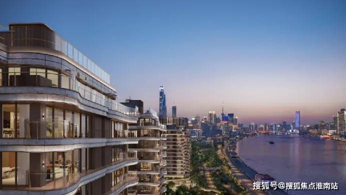 约270°蝶形阳台呼应江水曲线,波浪形立面与金属包边设计,将黄浦江流动感融入建筑;