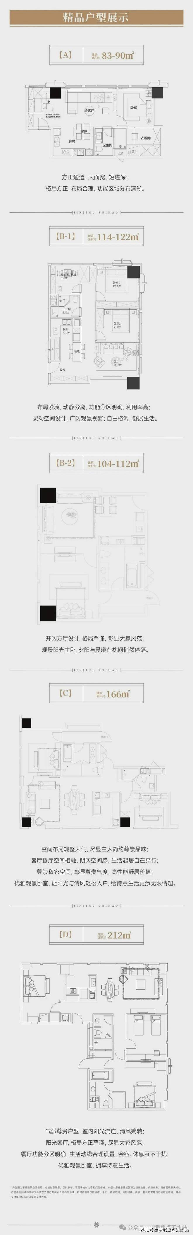户型:173套房源,主力面积84-420㎡(4梯8户),层高3米,精装交付(现房)。