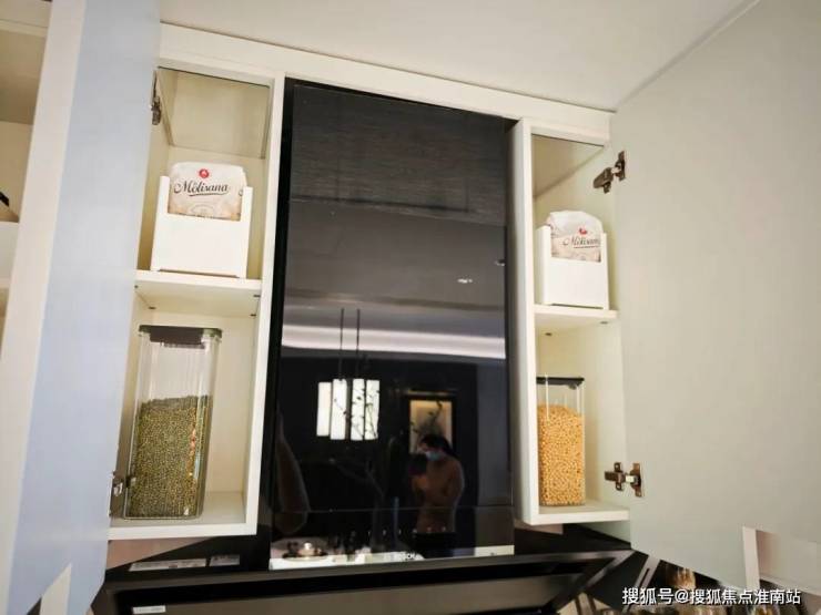 油烟机的两侧,也做了收纳,并且分了2层,提升了实用度。