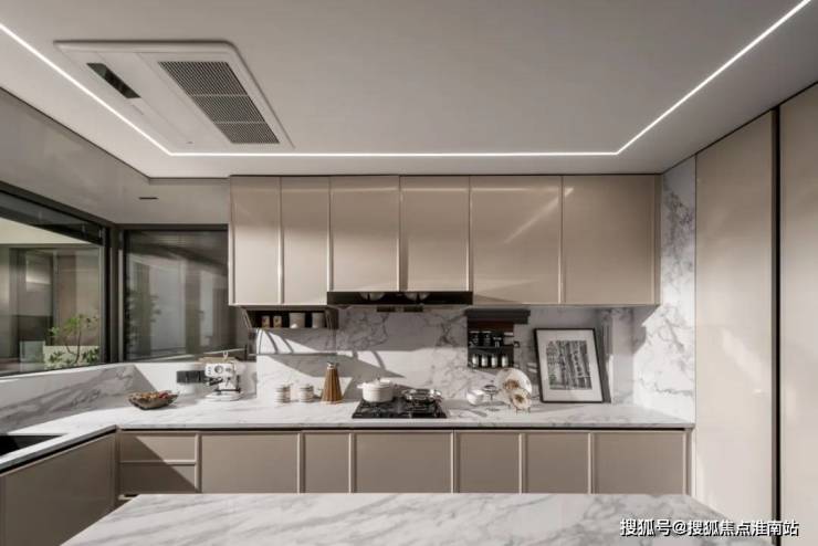 华润外滩瑞府售楼处电话☎:400-998-9694 超大尺度的中西岛台 ,既符合中式烹饪的实用逻辑(预留足够操作台面),又能承载西式社交(朋友小聚时在岛台品酒聊天),让厨房从“单一做饭空间”变成“生活场景发生器”。