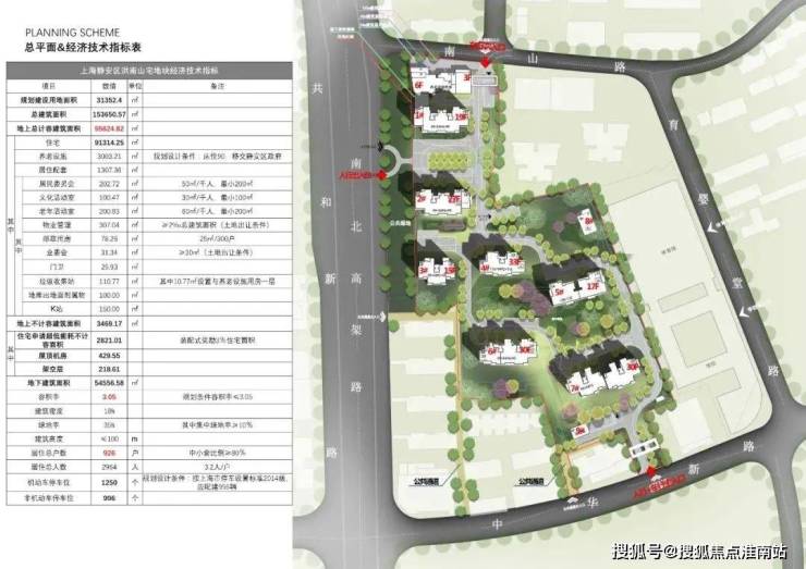 而北侧靠近南山路一侧还规划一幢最高6层的养老设施用房。在小区南北两侧的中华新路和南山路分别设有机动车出入口。