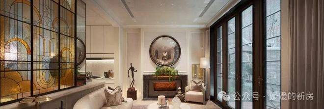 地面延续酒店式落客区海棠纹拼花镶钻,铁打纹工艺,其间还有老石板、青石板、中国黑老石皮、柏坡黄的石皮等原石原面铺装,老石皮从大料里取出,数量少而贵,由此也可看出保利·永兴里在别墅打造上是真舍得,也是真高级。