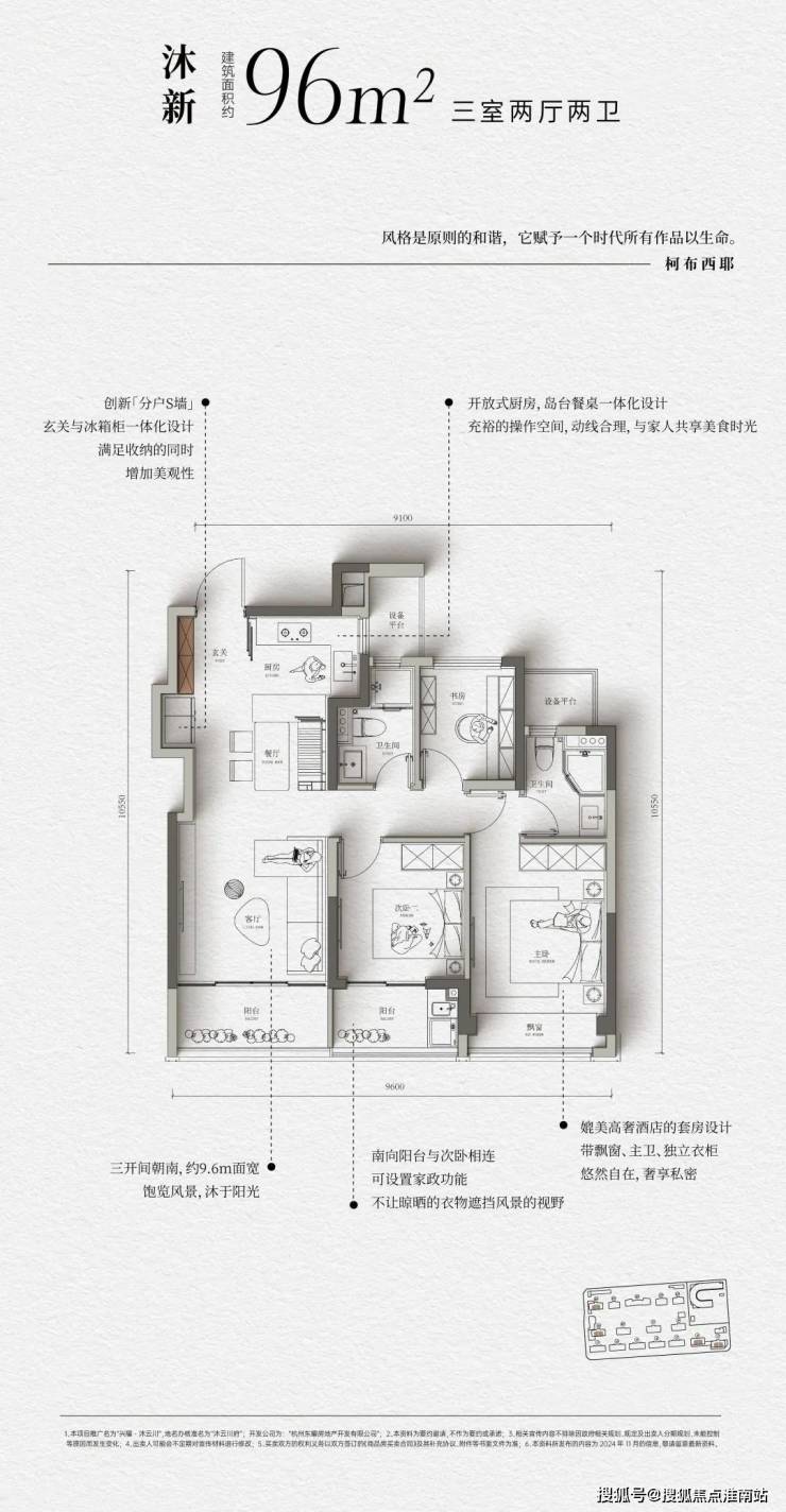 户型设计也花了极大心思:其中三开间朝南的建面约96m²的户型达到了约9.6米的开间,并采用创新“分户S墙”玄关冰箱一体化设计,不但释放了厨房的收纳空间也更符合一般家庭生活需求。创新采用S墙设计,可以做收纳空间,也可以将冰箱外移,实现厨房扩容。