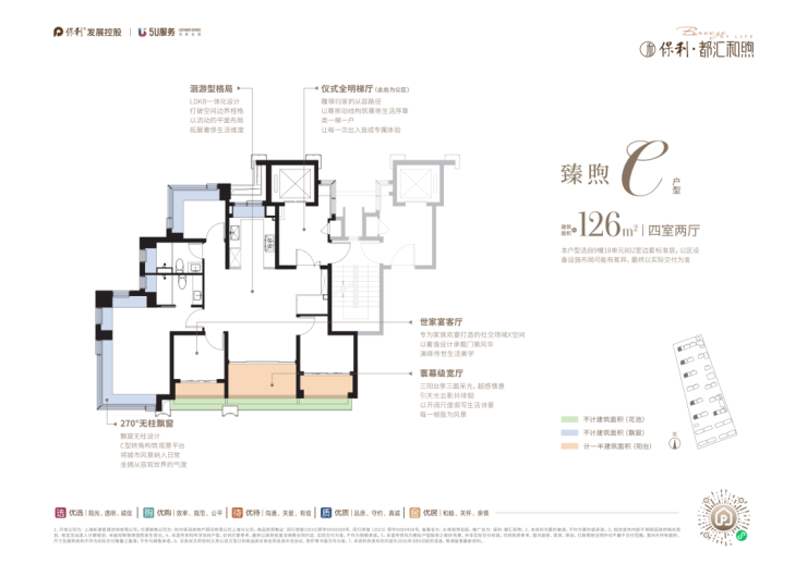 但作为 准四代宅,保利都汇和煦通过 多阳台+多景观花池+拓展型满配飘窗,实现了最大约 103.8% 的实得率!(全户型实得率约91.4%-103.8%)