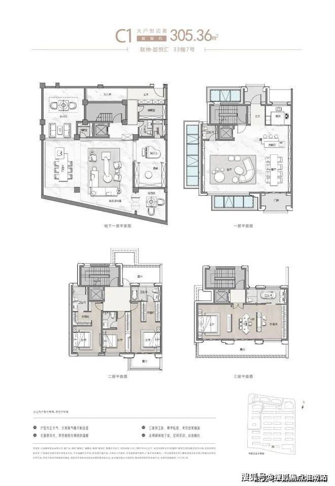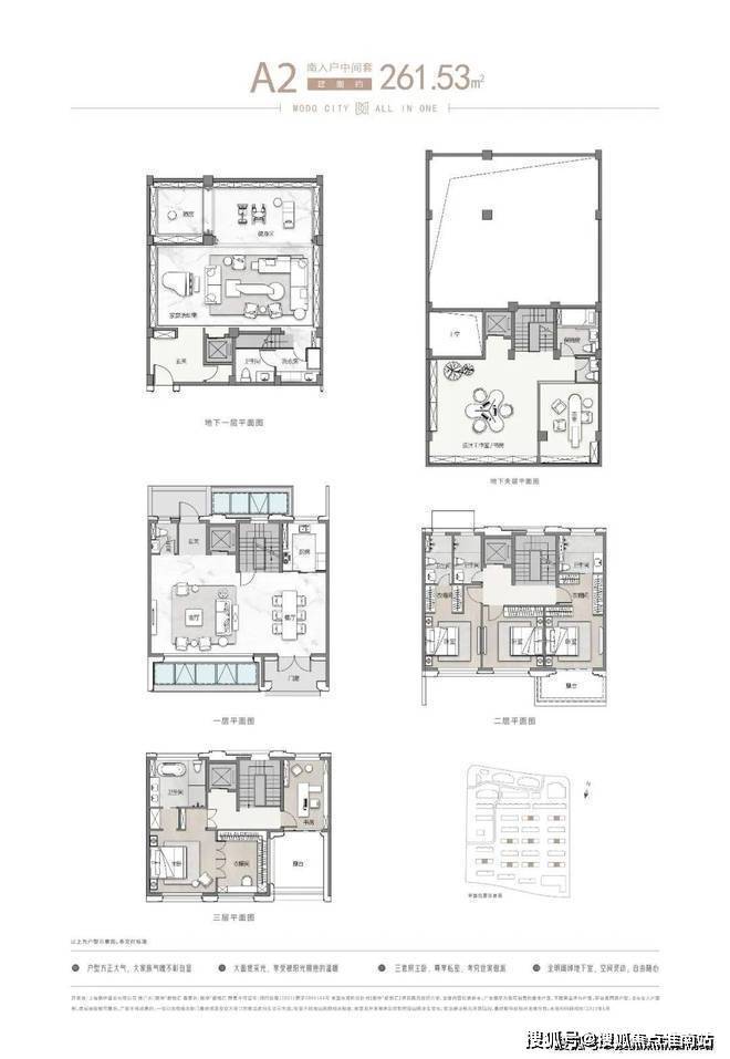 项目主推建面约262-305㎡联排别墅,分为南北入户,均为地上三层,地下两层设计,满足业主们“有天有地有花园”的别墅居住体验!