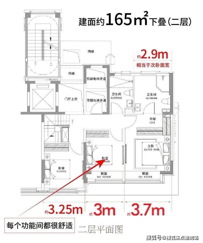 连主卫开间都有约2.9米,与普通次卧宽度相当。
