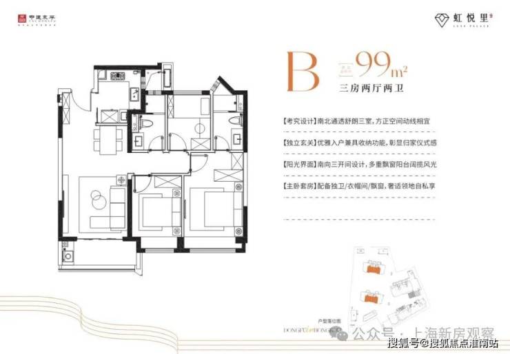 虹口中环旁「中建·虹悦里」主推建面约79-99m²2-3房,均价8.7万/㎡