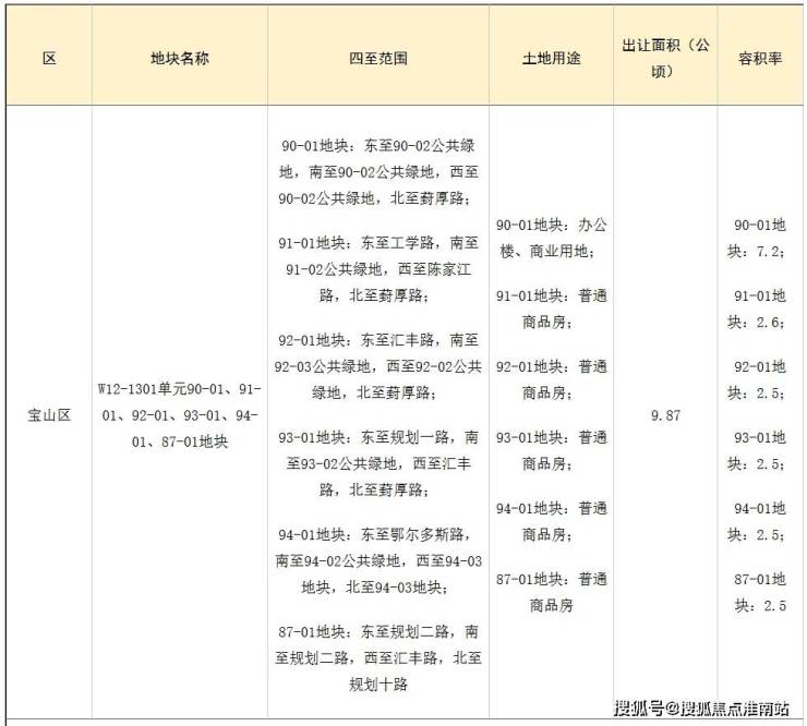 前不久,宝山区W12-1301单元90-01、91-01、92-01、93-01、94-01、87-01地块正式出让。