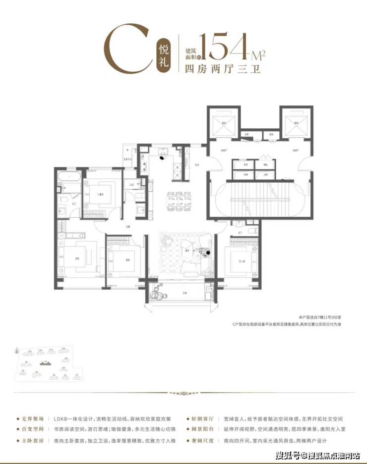 全景面宽+无界通厅+高附加值+收纳天花板,130㎡的面积直逼140㎡的尺度感!