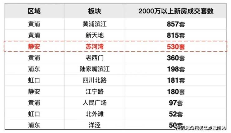 第一,去年约2000万以上的新房成交套数,苏河湾是全市第三,仅次于黄浦滨江和新天地。