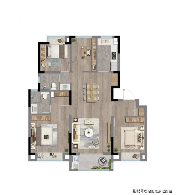 整体户型十分方正, 南北通透,室内无多余走廊浪费面积,空间使用率大幅提高。