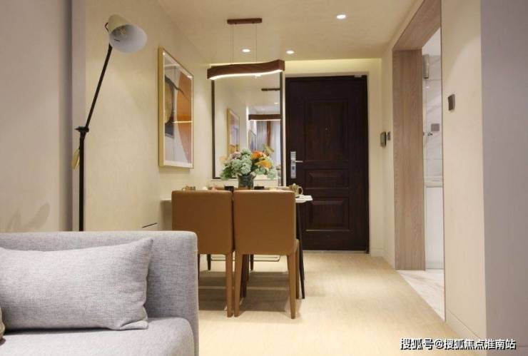 客厅面积约11.38㎡米,附带外凸式南阳台,入户门可设鞋柜,卫生间干湿分离。