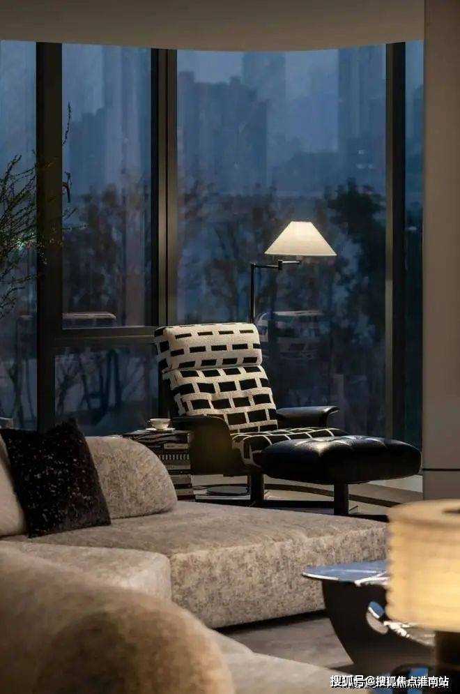 在这开阔而明媚的大平层空间里,270°的超大全景采光面如同一扇巨幅的画卷,将室外的绮丽景致无缝融入室内,让自然光线毫无拘束地自由穿梭。我们将沙发面向这无垠的窗景安置,让身心得以最大限度地沉浸在这份视觉盛宴之中。