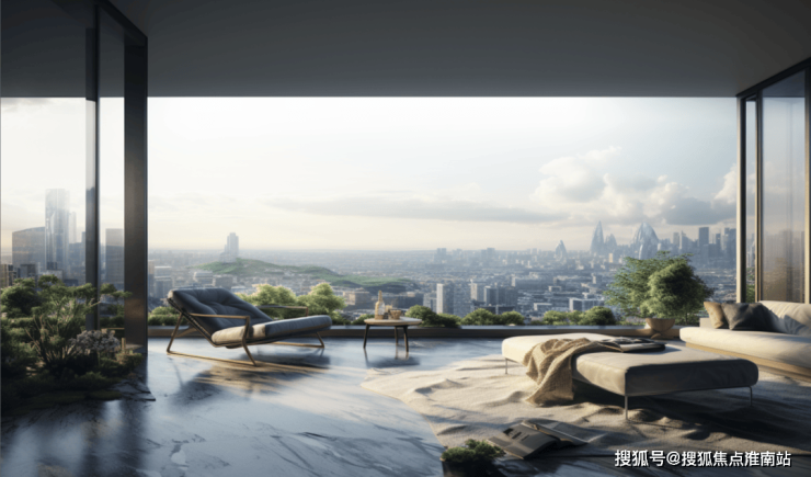 品质进阶增配举措2:中央会客厅,坐拥无遮挡观景视野,休憩、会客全能。尽展楼王风范;