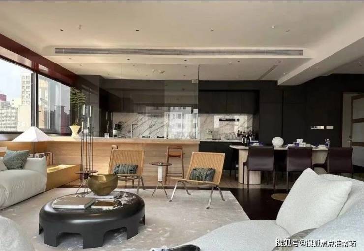 餐客厅:有四个区域,吧台区、餐厅区、两个沙发区域(会客厅)。