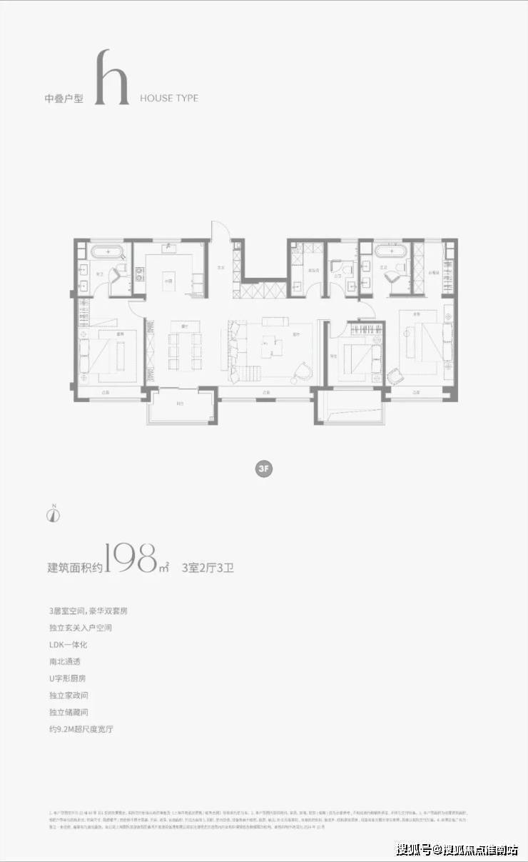 建面约100㎡3房2厅2卫,这是一个功能性和尺度感完美结合的明星户型。