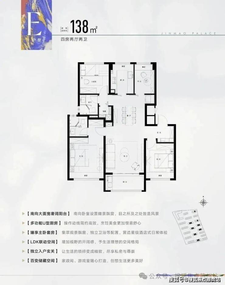 建筑面积约138㎡4房2厅2卫,做到了3开间朝南+主卧套房设计+南卧带飘窗+卫生间干湿分离,空间更加阔绰!