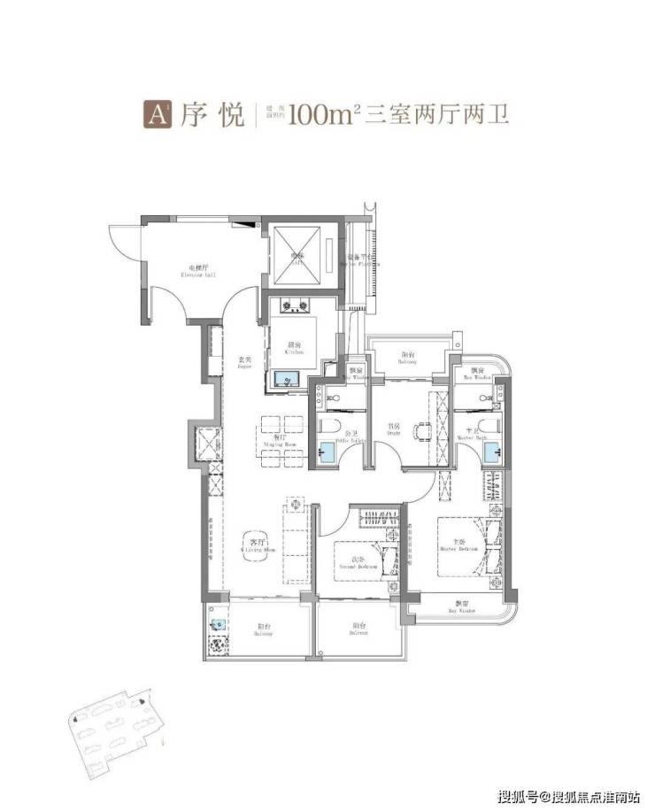 除了建面约100㎡3房外,这个建面约114㎡产品也是主打: