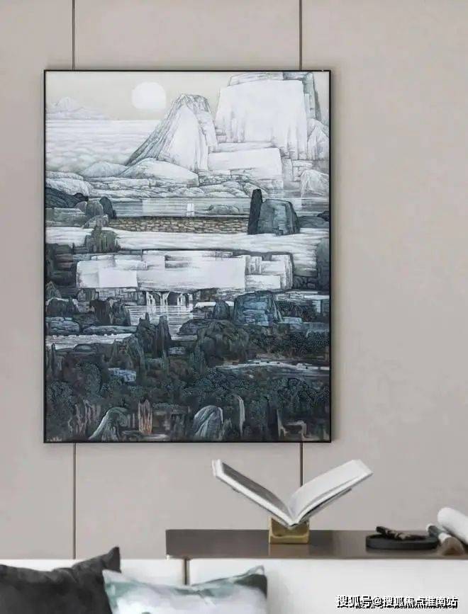 餐厅在整体设计上,沿袭了客厅的配色和风格,简约却又不失格调,尤其是山水墨画元素的融入,让用餐氛围更显温馨感。