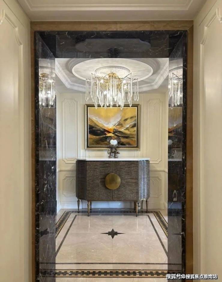 电梯快速直升云端,进入美宅之后,玄关处颇有artdeco装饰风格的复古气息扑面而来。