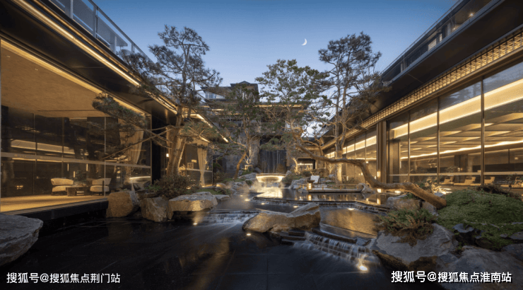 漫步于光影交织的幽静庭院,您将踏入一方充满诗意的天地。潺潺流水映照着婆娑树影,挺拔树姿为这片空间注入向上的生机,纵向延伸出无限的视觉张力。这座下沉庭院,不仅拉近了建筑与自然的情感共鸣,更使室内与景观紧密相连、和谐相融。每一扇窗户,都犹如框中的一幅生动山水画。