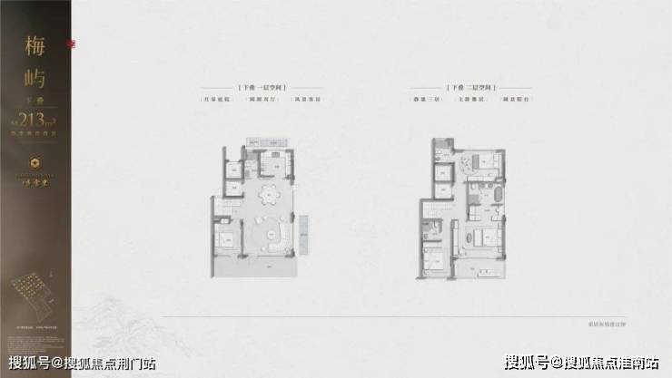 建筑立面:古今交融的诗意表达:外立面以香槟金铝板为基调,搭配蓝眼睛石材与玻璃幕墙,融合传统歇山重檐、纳福悬鱼等元素,既保留宋式建筑的对称美学,又赋予现代建筑的轻盈通透。合院组团采用三面庭院设计,L型景观面与环绕式檐廊,将超山梅影、丁山湖光引入每一扇窗景!