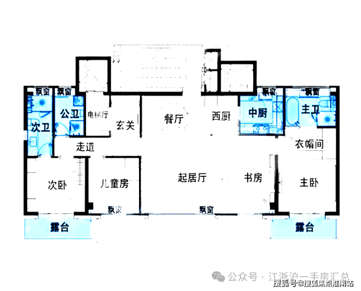 四层洋房户型:建面约170m²