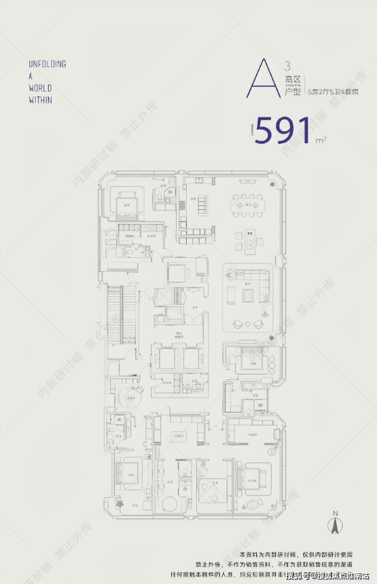 约600㎡户型是6房带4套房,完整满足了居住在平层的所有功能空间需求。