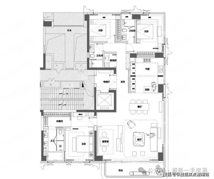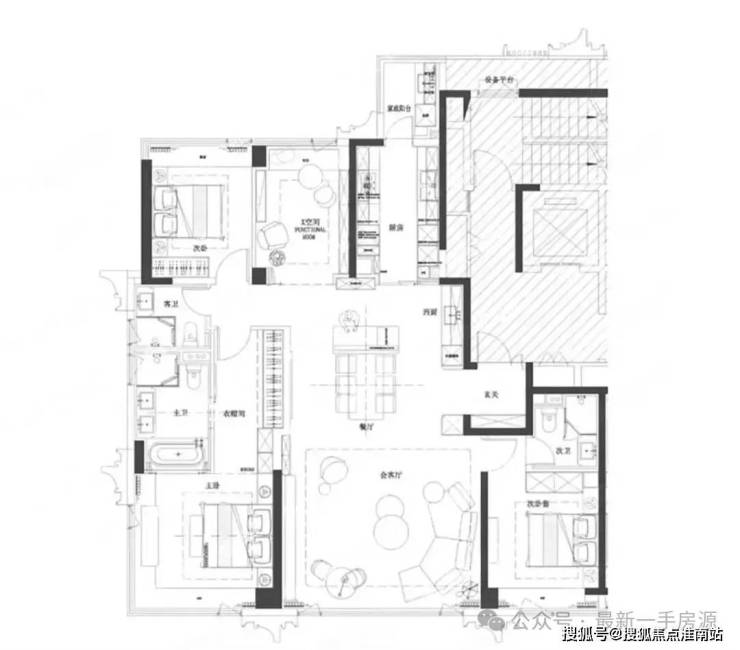 “楼王”产品——约230-286平方米江景大平层,西边户配备270度落地采光窗,主卧套房面积约40平方米,带独立卫生间、步入式衣帽间和观景飘窗。中西厨分离设计、嵌入式高端家电配置,则满足了高端家庭的宴请需求。