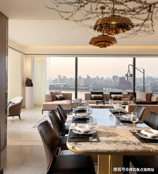 理石肌理与白色调交织相融,构筑起通透基底,焦糖色家具自带温和诗意,与窗外城市景致遥相呼应,共同勾勒出生活的丰盈画卷。