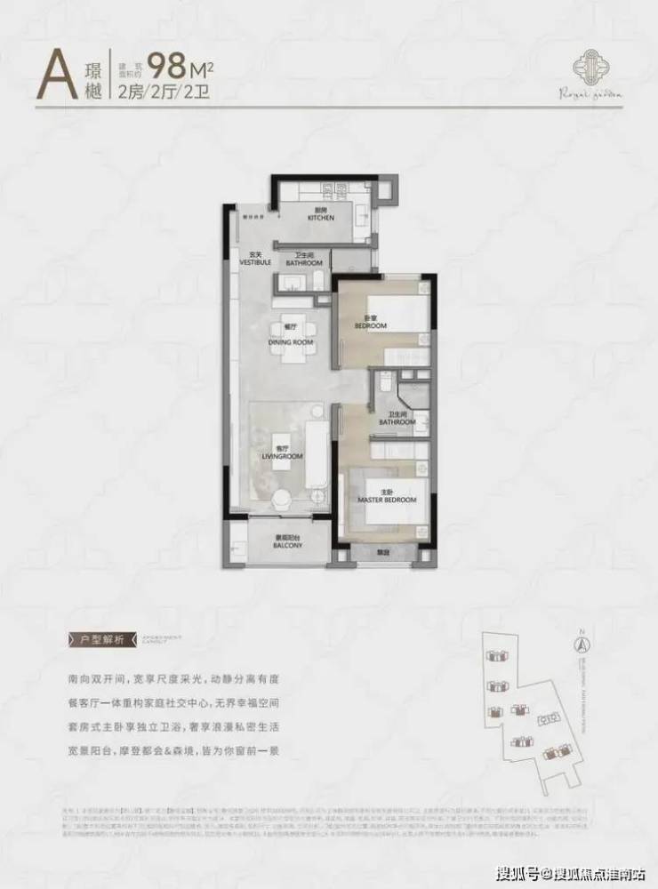 此户型比较适合三口之家或三代同堂居住,多为楼栋的东边套,且双南卧室设计,采光效果非常棒!还设计了独立储物空间和270°景观阳台。