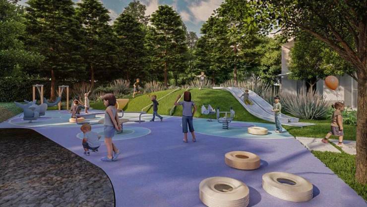 社区内部"一轴三园"归家礼序,活力中轴、入户叠水花园、雾色之河休闲园、特色山丘游乐园,豪宅品质立现。
