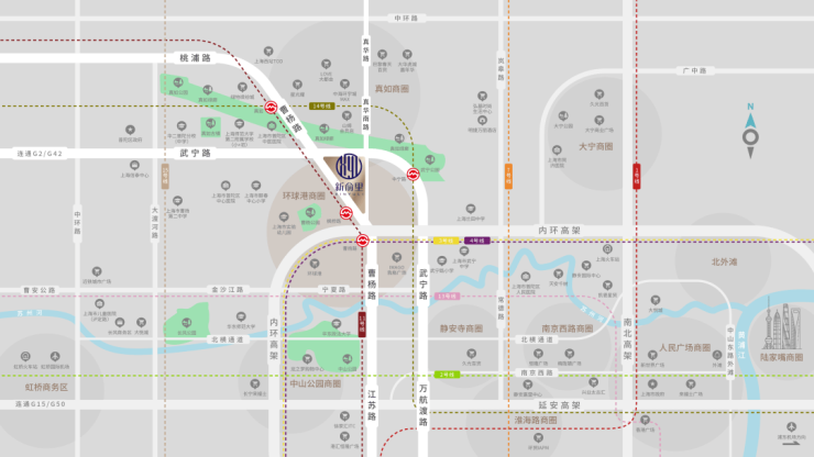 快速路:内环高架、沪京高速、中环立交、中环路、武宁路快速通道;