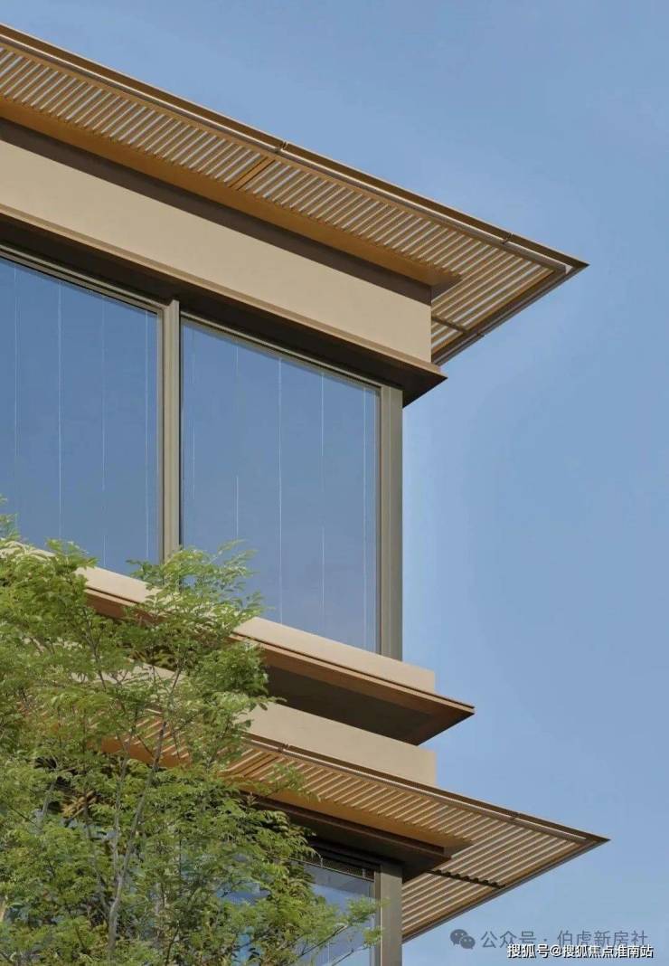 四季隐秀·東玠, 于尺度、比例、材质和光影之间,保持一种内敛而有力的节奏感。白金画框、漂浮飞檐、木石隔栅以及风情序厅等,以现代洗练的设计,打破古典主义的强对称轴线,轻盈而丰富。