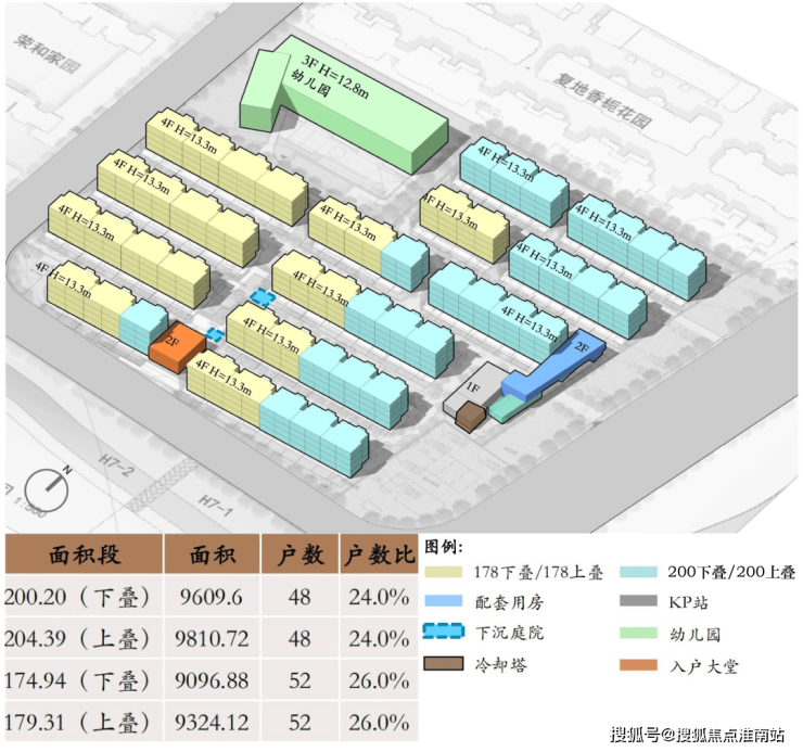 其中,建面约178㎡上下叠主要分布在地块西侧,建面约200㎡上下叠主要分布在地块东侧。