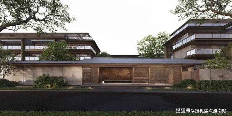 社区立面为新中式风格,以铝板+石材为主,窗墙比3:7,两段式、对称式造型。
