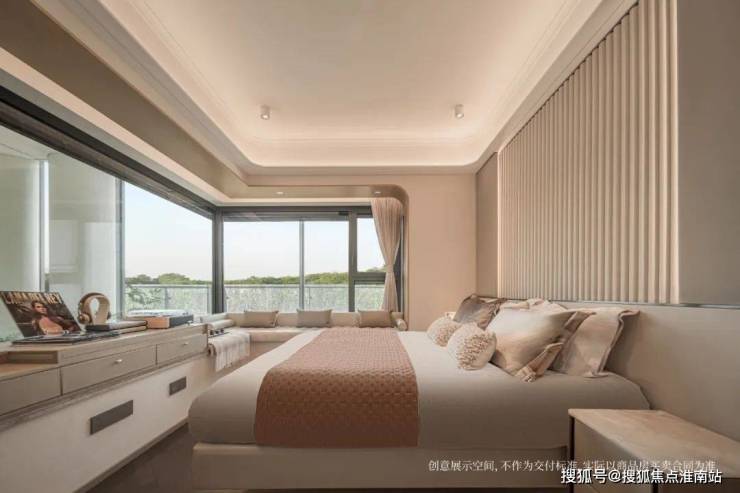 如果是边套的主卧,还会有一个约270°的转角飘窗,尺度感和实用性更上一层楼。
