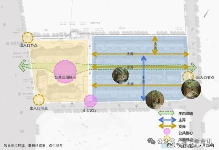 一条生态绿轴串联生态系统,一条南北主弄串联四条支弄,步移景异。