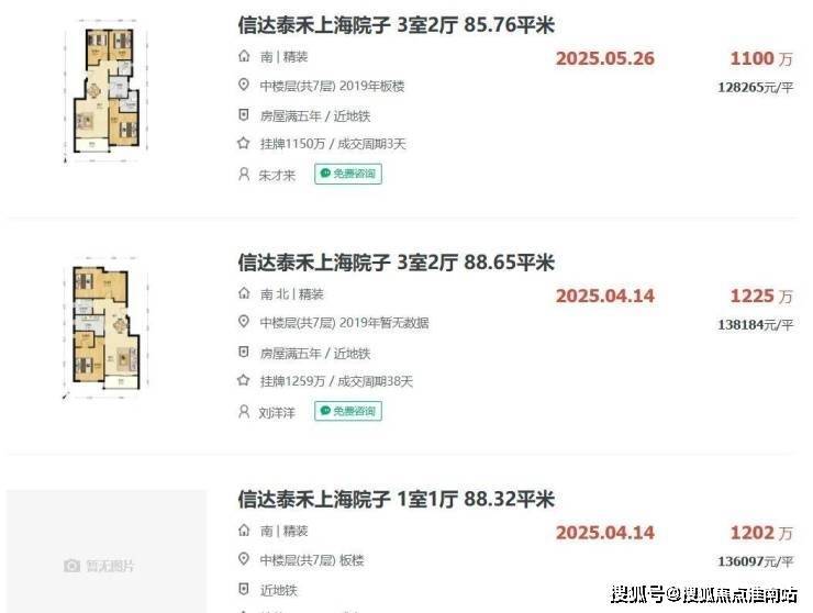 板块二手房方面,建发项目隔壁的上海院子,洋房最新成交价在12-14万之间。