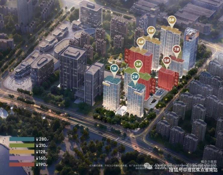 该方案亮点颇多,总计八幢高层和小高层设计,最南端的1#和2#楼均设置有私家泳池,而且还在19F采用了住宅楼当中较为少见的悬挑工艺,延伸出了一定的使用空间,个人预估这两幢会是配置大平层豪宅产品。